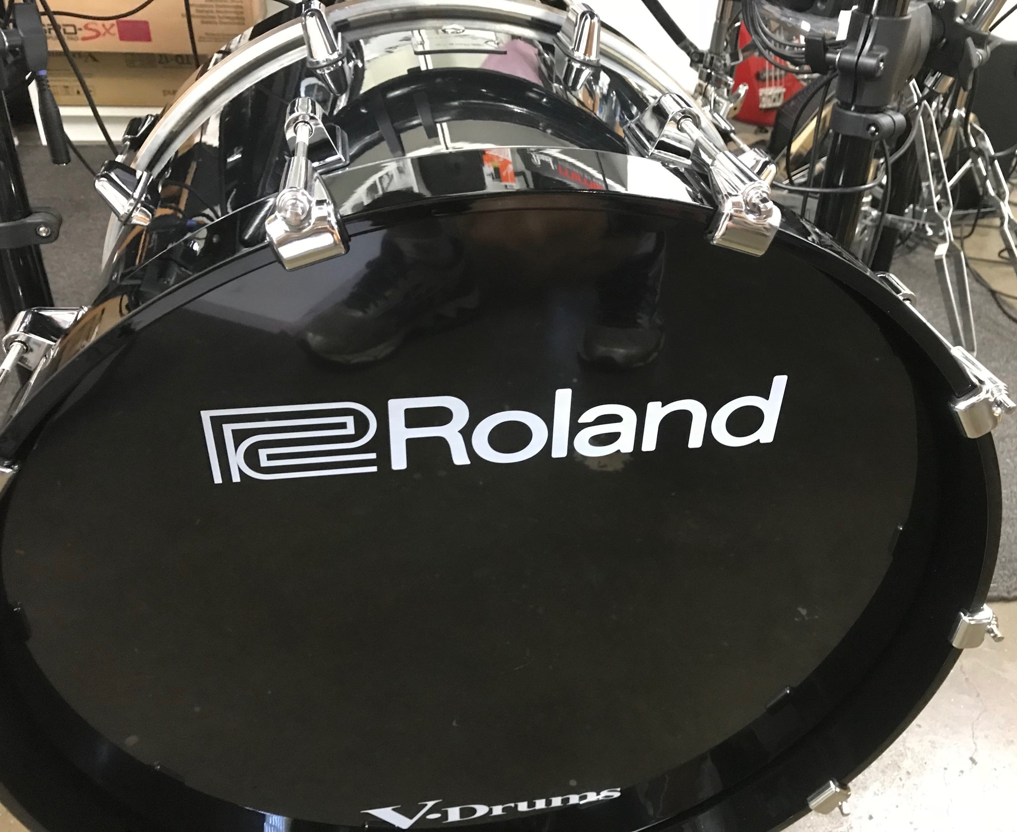 - Roland’s advanced kick trigger electronics installed in a 22-inch acoustic bass drum shell