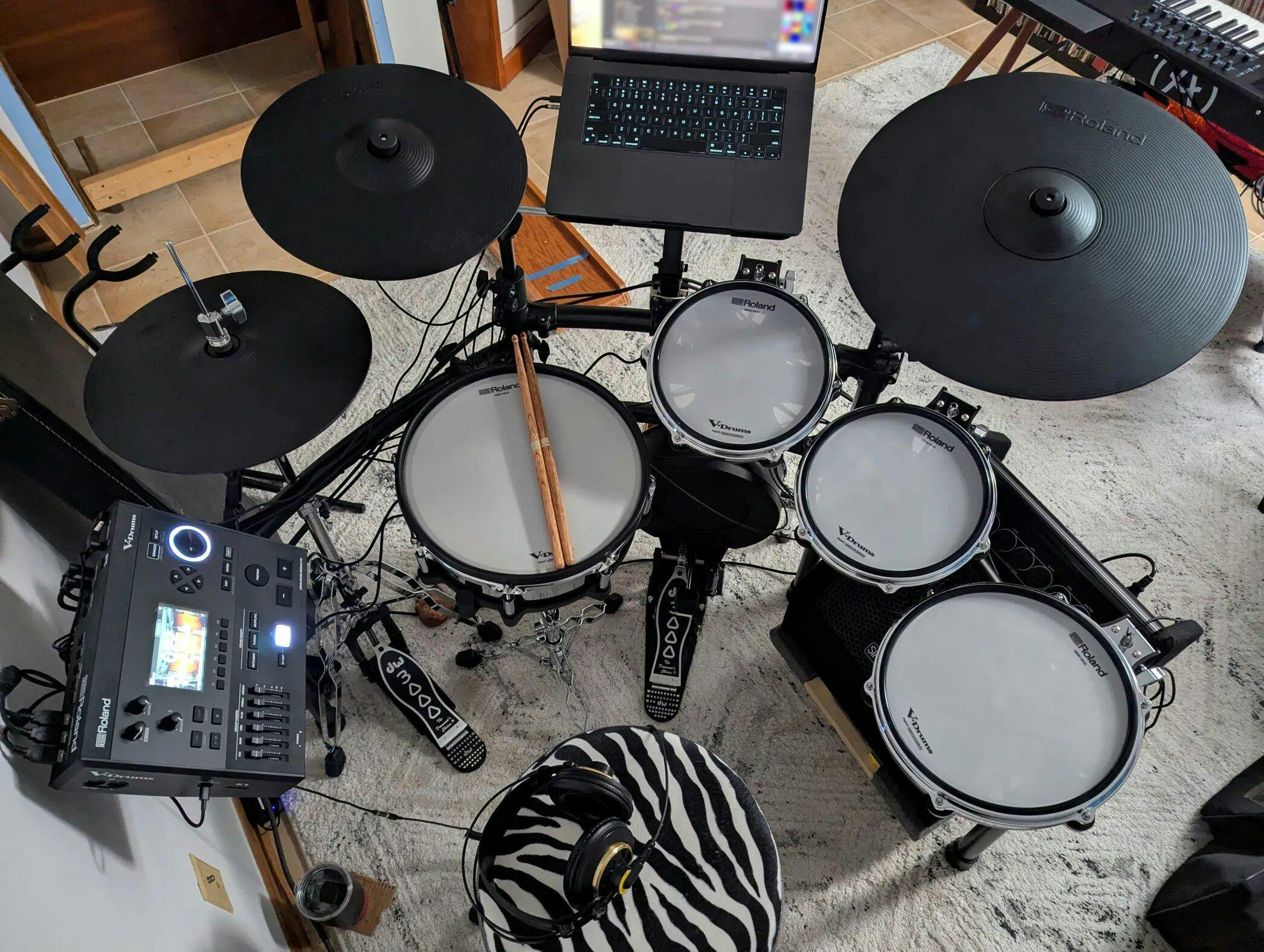 Dimensions (The required space volume) 71-1/16 (W) x47-1/4 (D) x 47-1/4 (H) inches (including Kick pad, Cymbals, Hi-hat stand and Drum throne)